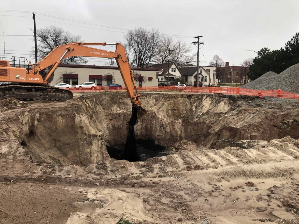 En terrenos de una industria automotriz se encuentra material de relleno afectado por metales detectados por su coloración en tonalidades violeta y olores anómalos.